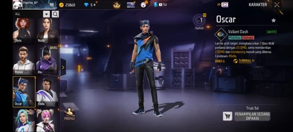Karakter Oscar Free Fire sudah bisa kamu gunakan dalam periode trial pada hari ini, Jumat, 25 April 2025. Tapi tenang saja, Oscar akan dirilis dalam waktu dekat untuk kamu semua, Survivors. Seperti yang disebutkan sebelumnya, Oscar merupakan karakter tipe penyerang cocok untuk pemain rusher.