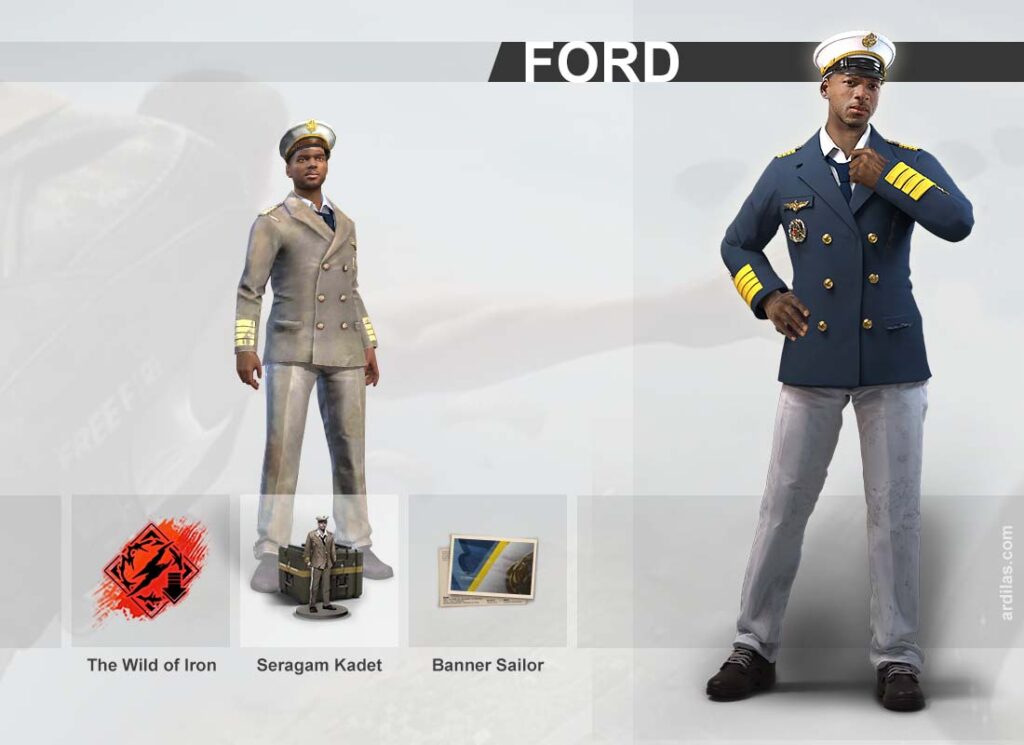 Seragam Ford sewaktu menjadi Kadet.Mengurangi damage di luar Zona Aman sebanyak 20%